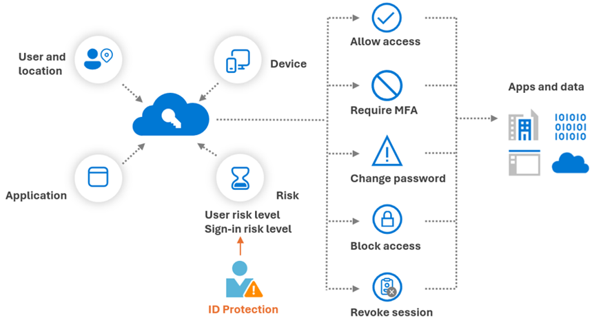 Microsoft recommends common patterns such as: – Always require MFA for high-risk sign-ins (so that, for example, if someone’s password was guessed, the attacker still can’t get in without the second factor). – Block extremely risky sign-ins or risky users until an admin can investigate. For example, if Identity Protection flags that a user’s account is definitely compromised (maybe multiple signs of breach), you might auto-block until the security team clears it. – Require password change for high user risk as mentioned, which automatically reduces risk after completion. – Use “report-only” mode first for new policies – an admin can simulate these policies (Azure AD CA has report-only mode) to see what would have happened, fine-tune conditions, then enforce them fully.